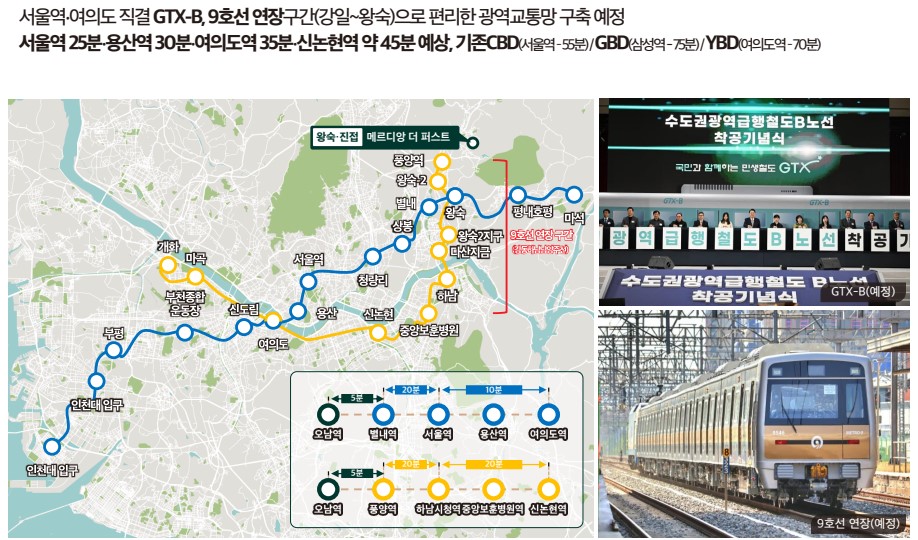 25분 용산역 30분 여의도 35분 신논현역 45분 등 강남, 강북 어디든지 빠르게 갈 수 있는 교통망이 구축되며