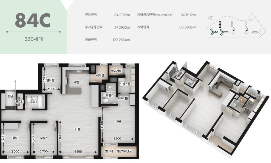 세대배치는 남동, 남서를 바라보면 정남향도 있어 다양한 소비자의 니즈를 반영했습니다.